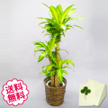 §観葉植物 幸福の木 8号 (籐かご、皿付) 観葉植物の贈り物一番人気、「幸福の木」と呼ばれる「ドラセナ・マッサンゲアナ」。ドラセナの中でもっともポピュラーな品種です。ハワイでは“家の前にドラセナを置いておくと良いことが起こる”という言い伝えがあり、そこから「幸福の木」と名付けられたそうです。生命力が強く長寿な木で育てやすいので、お部屋のインテリアとして大変人気の観葉植物です。※寒さには弱いです。 オフィスやお部屋を彩る「観葉植物」は、開店・開業祝い、開院・開局祝い、新築・引越祝いなど、幅広いお祝いの贈り物として定番のギフト。飾る場所を選ばず、お手入れも簡単。ニオイもなく花粉などの心配がないのも人気の理由。お客様やお取引先様友人やお知合いなどの個人様用の贈り物にオススメです。籐かごと、鉢皿付きです! |