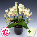胡蝶蘭のミディ系「フォーチュン・ザルツマン」は、淡い黄色に近いグリーンの花びらに赤いリップ。大変珍しいお色のミディ胡蝶蘭です。花弁が厚く花持ちがとてもよいので、長い期間その美しい姿をお楽しみいただけます。3本立以上は、コンパクトながら華やかな仕上がりで、飾っていただくスペースがあまり広くない場合や、ご自宅用に最適です。 生産者の育種努力によって多種多様なお花のお色や形が生み出される「ミディ胡蝶蘭」。大輪系とはまたひと味違う優雅さ愛らしさがあり、母の日プレゼント、お誕生日プレゼント、長寿のお祝いなど個人様へのフラワーギフトとして人気です。 |