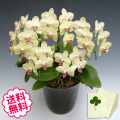 胡蝶蘭のミディ系「フォーチュン・ザルツマン」は、淡い黄色に近いグリーンの花びらに赤いリップ。大変珍しいお色のミディ胡蝶蘭です。花弁が厚く花持ちがとてもよいので、長い期間その美しい姿をお楽しみいただけます。5本立以上は、コンパクトながらボリュームもあり華やかな仕上がり。小スペースのお店やオフィスの開店祝い、開業祝いなどにもお喜びいただけます。 生産者の育種努力によって多種多様なお花のお色や形が生み出される「ミディ胡蝶蘭」。大輪系とはまたひと味違う優雅さ愛らしさがあり、母の日プレゼント、お誕生日プレゼント、長寿のお祝いなど個人様へのフラワーギフトとして人気です。 |
