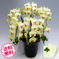 胡蝶蘭のミディ系「フォーチュン・ザルツマン」は、淡い黄色に近いグリーンの花びらに赤いリップ。大変珍しいお色のミディ胡蝶蘭です。花弁が厚く花持ちがとてもよいので、長い期間その美しい姿をお楽しみいただけます。6本立以上は、ボリュームがあり華やかな仕上がり。小スペースの開店祝い、開業祝いの他、楽屋見舞いなどにもお喜びいただけます。 生産者の育種努力によって多種多様なお花のお色や形が生み出される「ミディ胡蝶蘭」。大輪系とはまたひと味違う優雅さ愛らしさがあり、母の日プレゼント、お誕生日プレゼント、長寿のお祝いなど個人様へのフラワーギフトとして人気です。 |