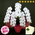胡蝶蘭大輪の白・ピンク・リップからお選びいただいたお色の胡蝶蘭を寄せ植えにした5本立。1本に約13輪前後の花を着けた「プレミアム」クラスの最高級胡蝶蘭は輪数が多く大変豪華。ボリュームある仕上がりですので、企業様への贈り物には大変人気です。大切なお取引様の就任祝い、開店・開業のお祝い等、また、特別な記念日やお祝いの贈り物におすすめです。